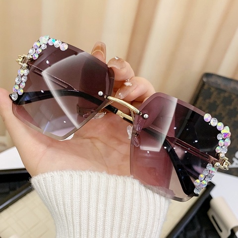 ¡Novedad de 2025! Gafas de Sol de lujo de gran tamaño con lentes degradados sin montura cuadrada con corte de diamante para mujer